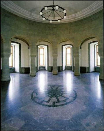 En la torre norte y a nivel de la tierra, se encuentra la Gruppenführersaal, una sala circular con 12 columnas y una rueda solar en el centro de la misma, de donde parten 12 rayos que representan al Sol Negro.