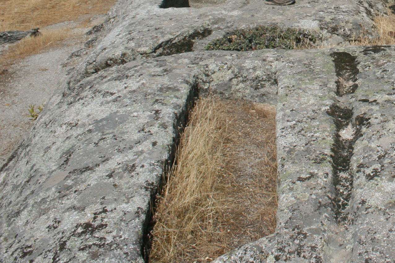 Una de las fotos nos muestra una pileta en lo alto de una roca, con unas toscas escaleras para facilitar la subida, esta pileta está situada sobre un Punto de meditación de 11500 UB, hay otra pequeña cazoleta que marca el final de una línea ondulada en la que algunos quieren ver la representación de una serpiente, en estos momentos casi inapreciable, al lado de una urna o sepulcro, en esta cazoleta también existe un Punto de Meditación de 11500 UB. El lugar donde estuvo la iglesia, solo hay un campo arado, no resulta complicado detectar el vórtice de 13500 UB sobre el que se construyó dicha iglesia.