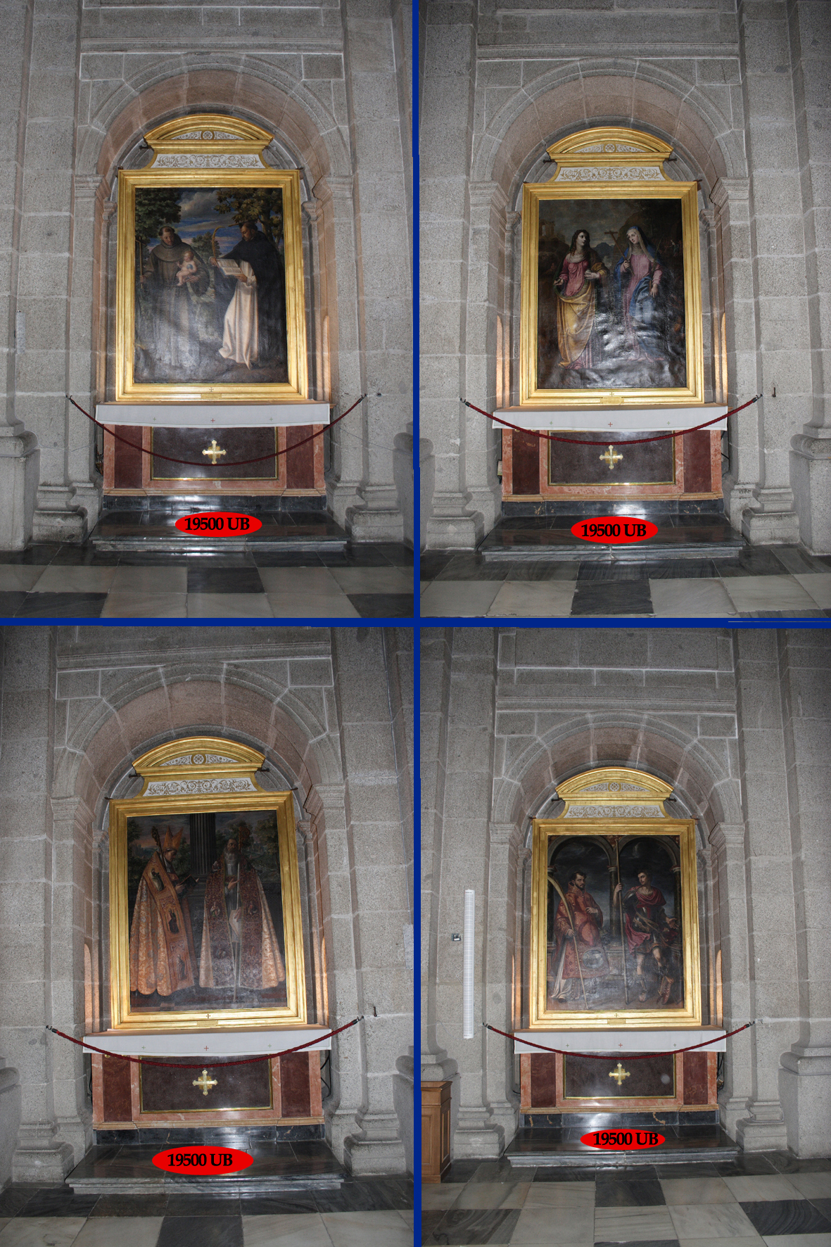 Los de 13500 UB más significativos se encuentran en las capillas laterales situadas junto a la entrada, tres vórtices en cada una de ellas. Existe otro en el Altar Mayor; no puedo acceder pero creo situarlo en el sagrario. No he podido visitar el Patio de los Evangelistas, solo verlo a través de las rendijas de sus cerradas puertas de acceso; pero puedo asegurar, sin temor a equivocarme, que su templete central se sitúa sobre un vórtice de 13500 UB.