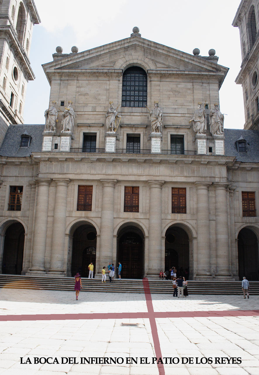 Los vórtices son invisibles columnas de energía. Si para la construcción de un templo se elegía un lugar que contase con al menos uno de estos vórtices es porque este era considerado el punto de unión entre lo espiritual y lo terreno; este era el alma del templo, el que aportaba la espiritualidad a la edificación. Si allí donde la energía se hace más densa era considerada una señal divina, en aquellos lugares donde la energía era mucho menos densa (aquellos cruces geopatógenos que también sabían detectar), eran considerados como obra del demonio. Por eso no es difícil encontrar lugares con un nombre que señala el peligro: Sillón del Diablo, Callejón del Infierno, La Cruz del Diablo, La Boca del Infierno, etc. El nombre coincide en la mayoría de las ocasiones con una fuerte geopatía en el lugar. Y en el monasterio también existe ese lugar: se trata de un peligroso cruce de Líneas Hartmann de tercer y cuarto orden que se encuentra en el Patio de los Reyes; posiblemente esta sea la verdadera Boca del Infierno de El Escorial.