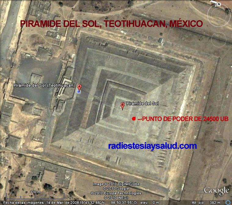 La calidad biótica del terreno fuera de las pirámides arroja una lectura de 7500 UB. Las llamadas pirámides satélites que rodean a las grandes pirámides no registran las mismas mediciones que sus hermanas mayores ya que no fueron construidas sobre un Vórtice Energético, pero aún así también tienen su magia. Prospecté una desde fuera, ya que su entrada no está habilitada. En su interior la medición es de 8500 UB; es decir, dentro de la pirámide se registran 1000 UB más que en el exterior de la misma. No prospecté las redes telúricas que surcan esta pirámide. Lo he hecho desde casa y el resultado es el siguiente: líneas Hartmann 6500 UB, cruce Hartmann 5800 UB, líneas Curry 6000 UB y cruce Curry 5500 UB.