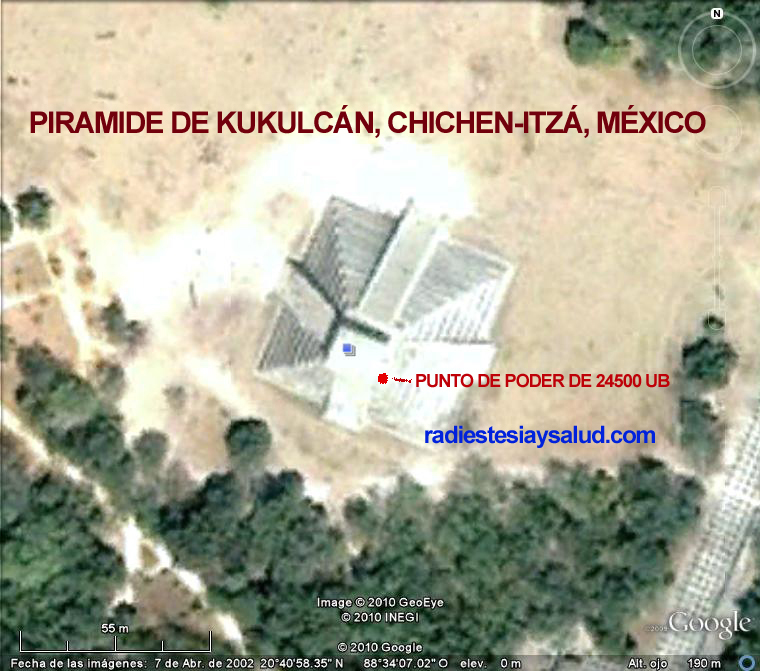 Existen otras pirámides en el mundo que también cuentan con un Vórtice Energético en su interior. Puede que haya más, yo s los he detectado en alguna de las pirámides de México, entre ellas la pirámide del Sol en las ruinas Aztecas de Teotihuacan, y la pirámide de Kukulcán en el complejo Maya de Chichén-Itzá (ambas cuentan con un Vórtice Energético de 24500 UB). Aunque la orientación entre las pirámides mayas y egipcias no es coincidente, sí que lo es la ubicación en las mismas del Vórtice Energético con respecto al vértice.