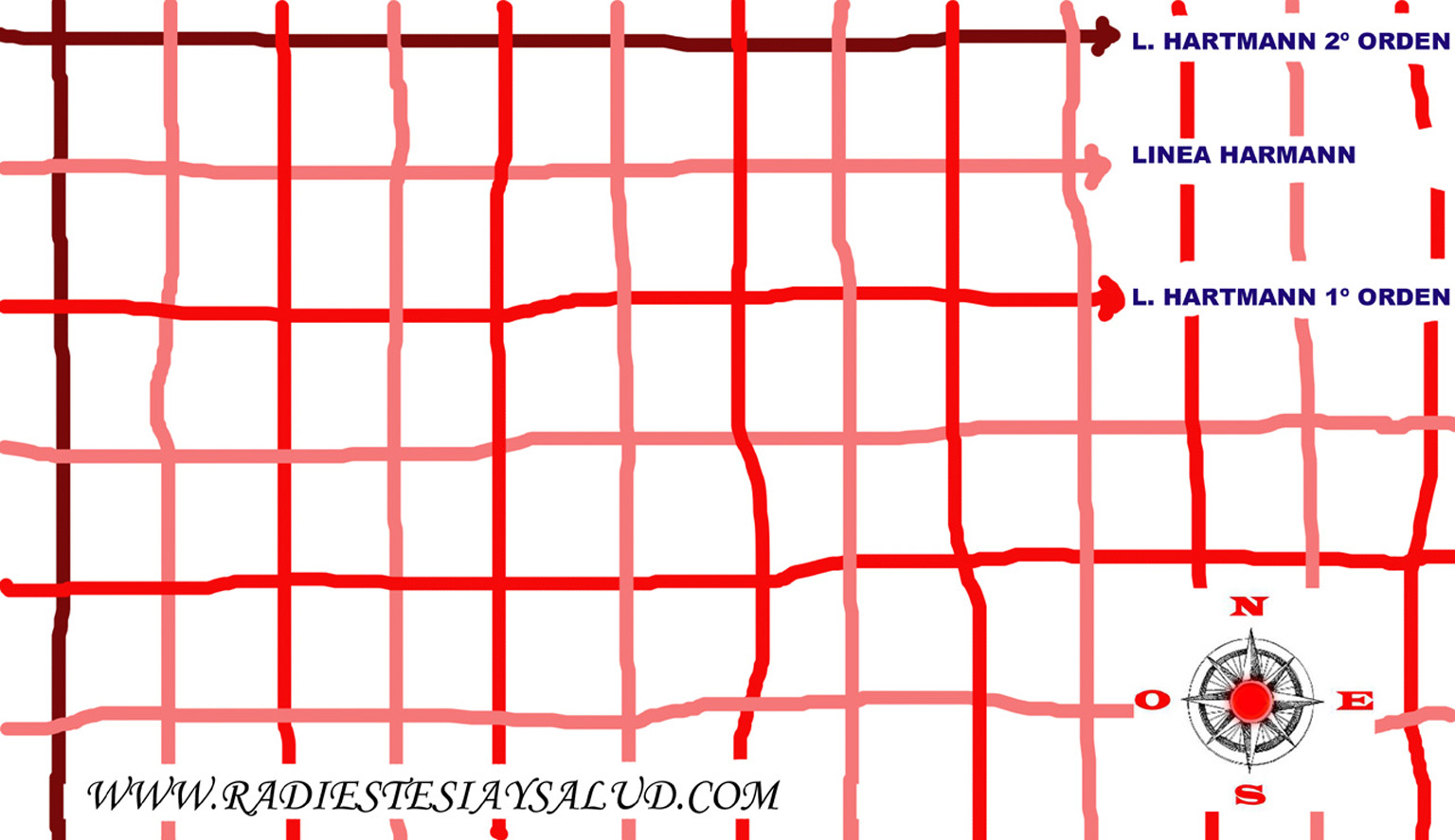 Ya en el siglo pasado Palm, un ayudante del doctor Hartmann, dejó constancia de que estas líneas eran una semidistancia de otras más peligrosas, a las que denominaron líneas Hartmann (líneas H) de primer orden. Cada 7 cuadrículas de la red Hartmann (red H) de primer orden existe otra más potente a la cual denominaron línea H de segundo orden. Cada siete cuadrículas de la red H de segundo orden existe otra más potente a la cual denominaron línea H de tercer orden.