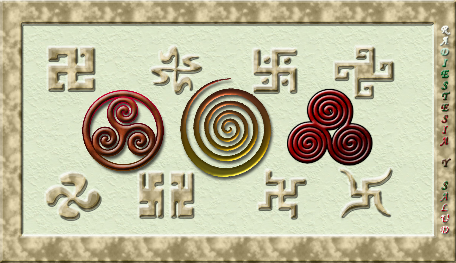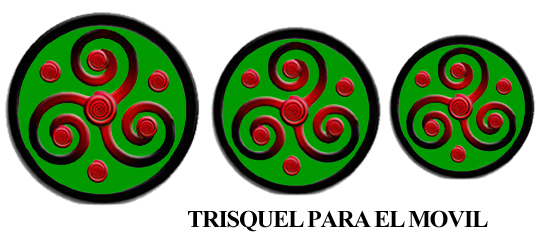 Incluyo una imagen con tres trisqueles, si lo imprimen y recortan uno de ellos pegándolo en la parte trasera del teléfono móvil, con el dibujo hacia fuera, conseguirán elevar la densidad bioenergética por delante del móvil; hecho que reduce en parte el efecto nocivo de las ondas electromagnéticas generadas por el teléfono. Es bastante más efectivo que algunos hologramas que he testado y que se destinan al mismo uso.